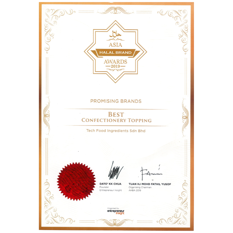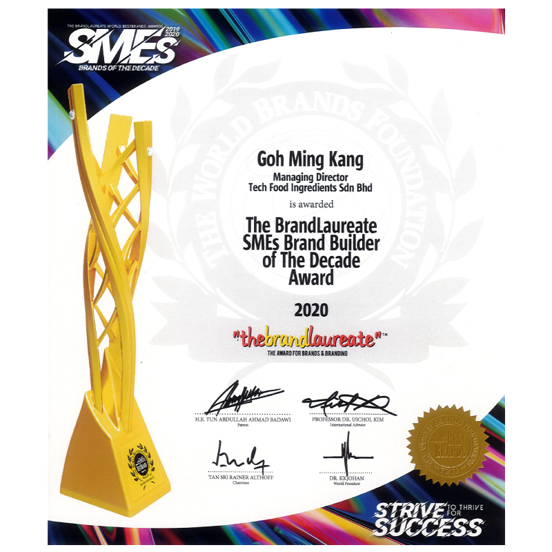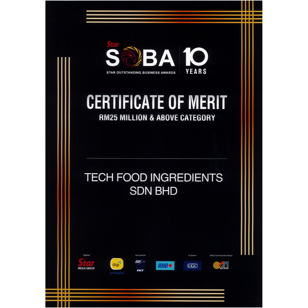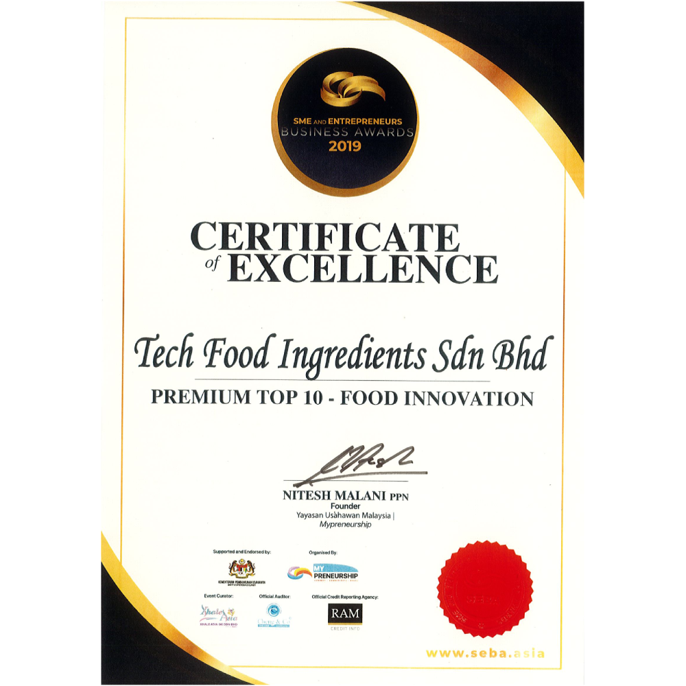 At Tech Food Ingredients Sdn Bhd, our unwavering commitment to exceptional services and core values drives our every endeavor. We take great pride in our ability to offer innovative product development, tailored specifically to meet the unique requirements of each customer. This dedication has garnered us esteemed recognition from renowned organizations within the industry, solidifying our position as trusted professionals.